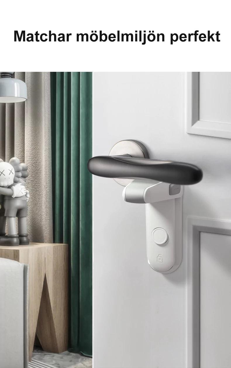 - Dörrlåset passar de flesta dörrhandtag på marknaden.